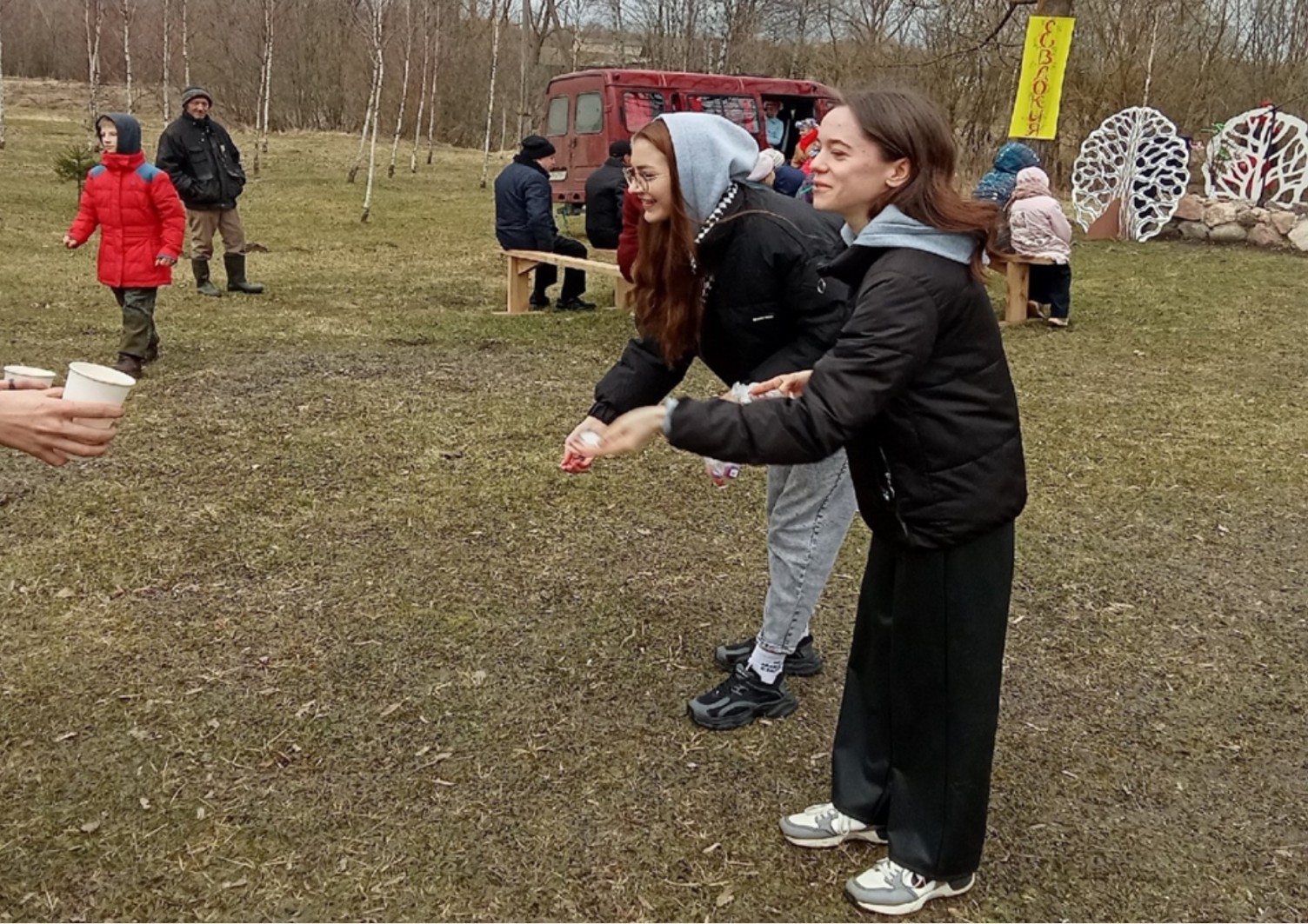 Жители деревни с большим удовольствием пришли на праздник, чтобы окунуться в обряд зазывания весны. Для них было подготовлено театрализованное представление «Как Евдокия Овсень искала!».